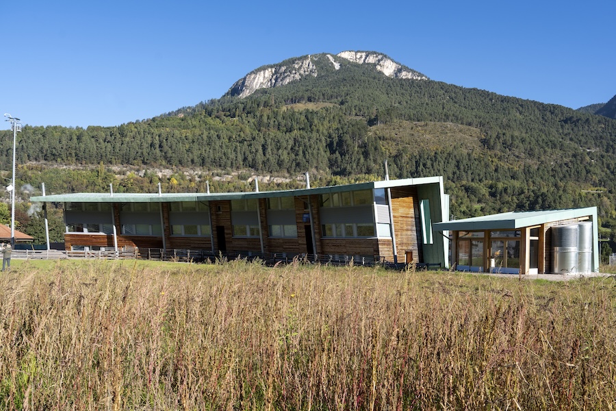 Dal punto di vista tecnico, i pannelli XLam presentano spessori variabili tra 81 mm (pareti interne) e 285 mm (tetto), mentre sul piano ambientale la scelta di legname locale trentino ha contribuito a ridurre l’impatto emissivo legato ai trasporti, con circa 60 tonnellate di CO₂ equivalente evitate (ordinariamente il legname viene importato da Paesi distanti centinaia di chilometri, con trasporti su gomma).